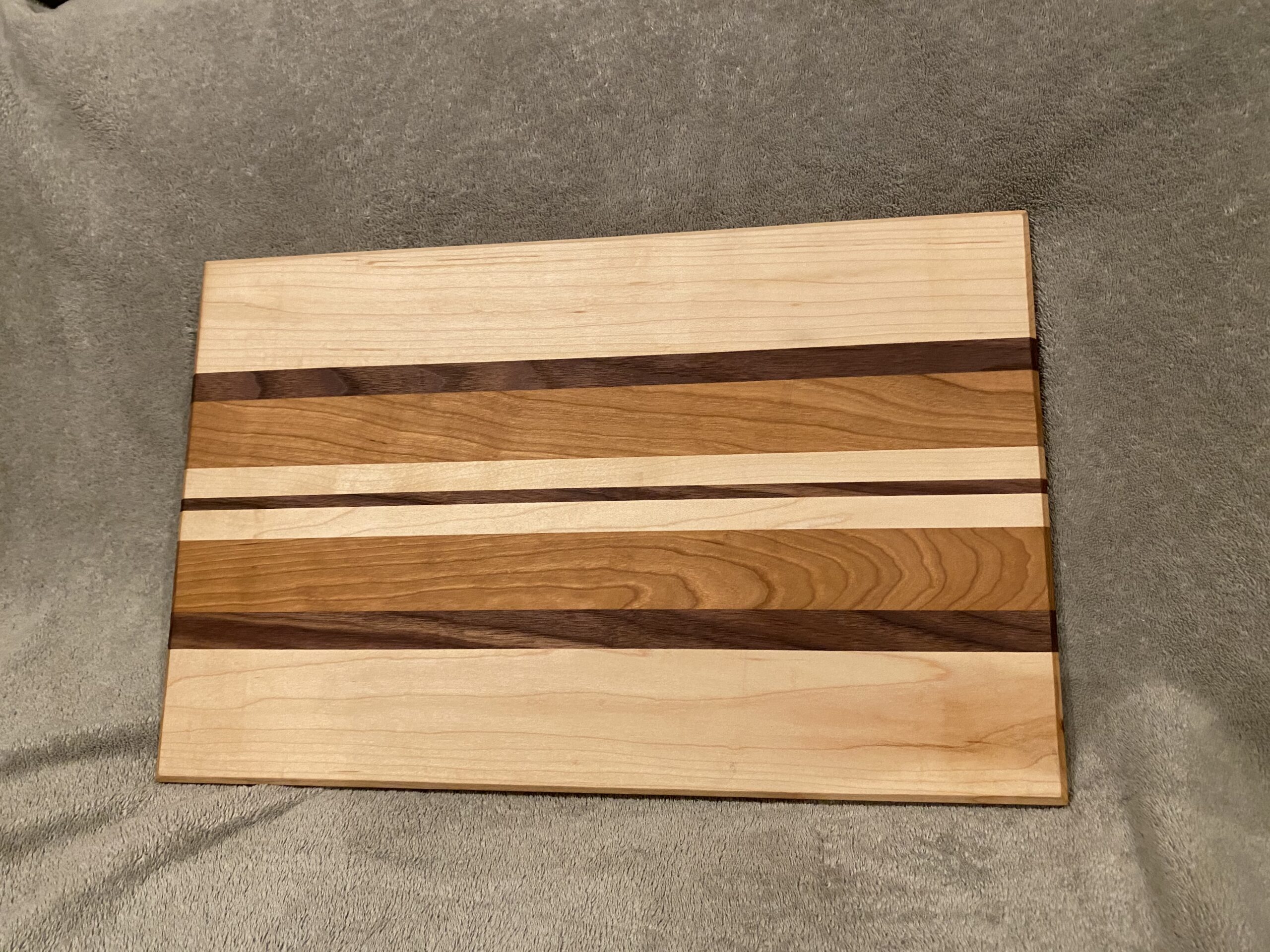 Handmade hardwood maple & cherry cutting board w/ walnut accents.